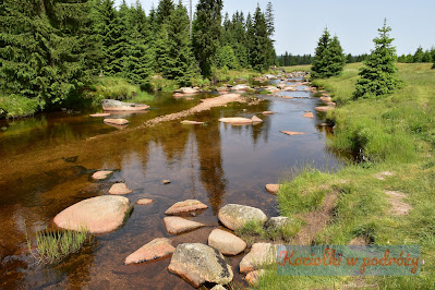 Nad brzegiem Izery można spędzić wiele godzin i wpatrywać się w jej piękno. Czas jednak nagli, a do przejechania mamy jeszcze sporo kilometrów. Wsiadamy na rowery i jedziemy dalej. Wkraczamy na teren Rezerwatu Przyrody Torfowiska Doliny Izery.
